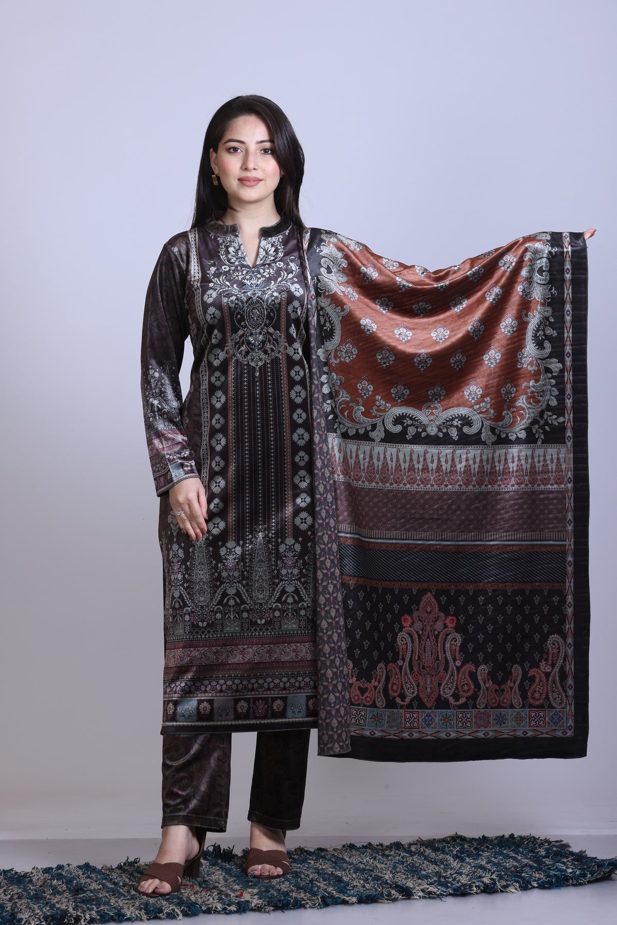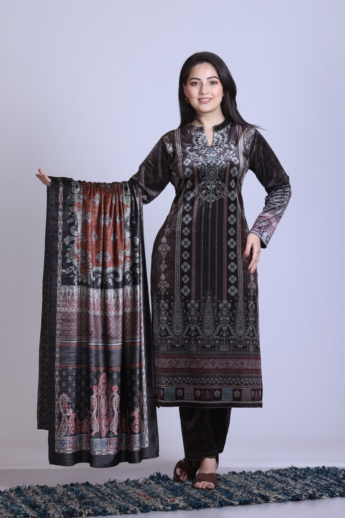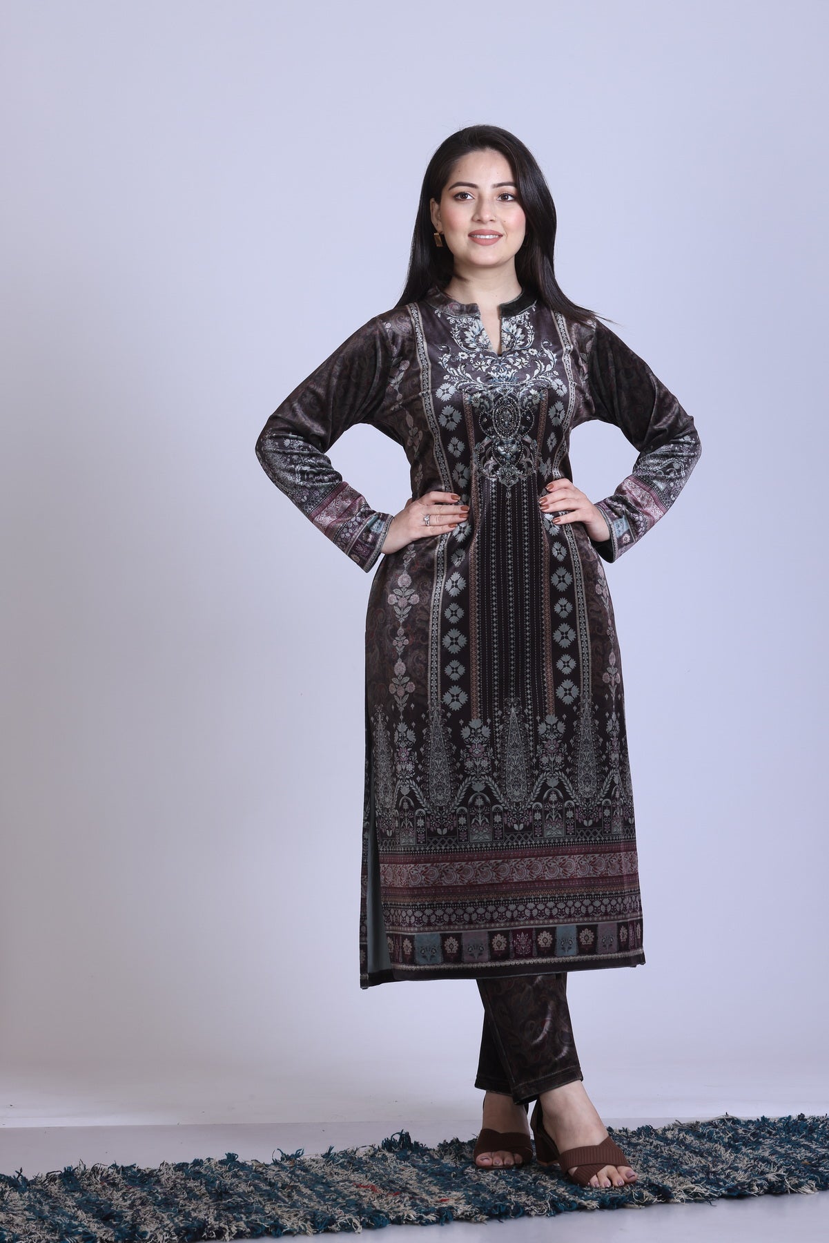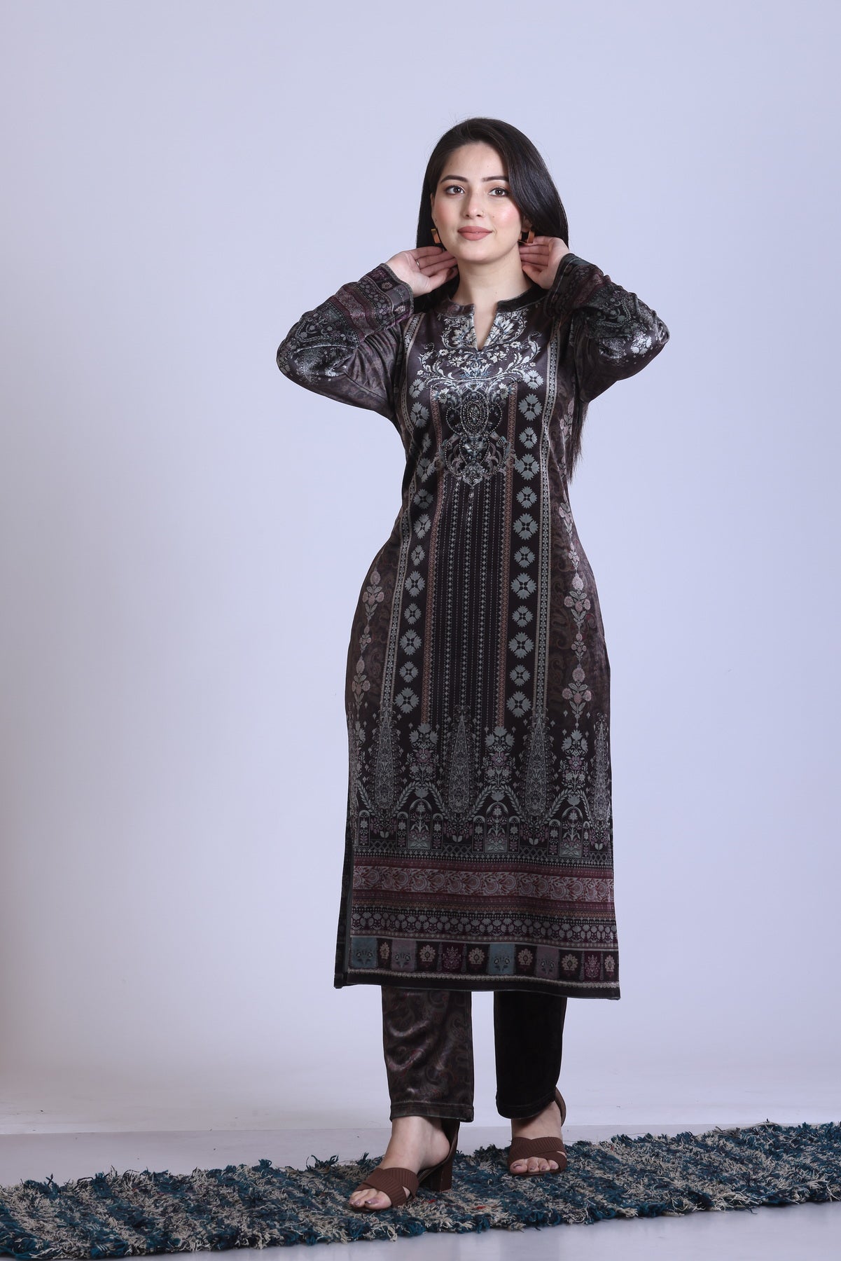 The Royal Black Pakistani Style Kurta Set features a stunning...